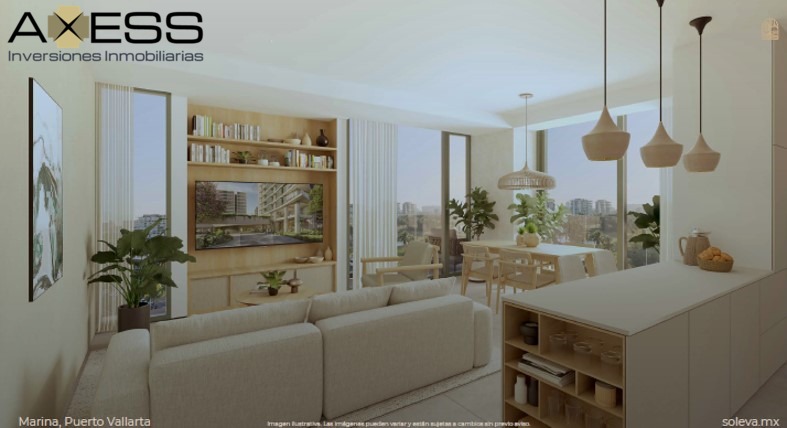 Este exclusivo departamento en SOLEVA, en Marina Puerto Vallarta, ofrece un estilo de vida de lujo y flexibilidad en una de las zonas más dinámicas de la ciudad. Con 86.45 m² de espacio interior, el departamento se destaca por su innovador diseño Lock-Off, que permite a los residentes rentar una parte del inmueble sin sacrificar su privacidad. El departamento incluye: 2 recámaras y 2 baños completos, con un walk-in closet que optimiza el espacio. Sala, comedor y cocina con concepto abierto. Un balcón o terraza para disfrutar de las vistas. Un cajón de estacionamiento. El desarrollo SOLEVA complementa el estilo de vida de sus residentes con una amplia gama de amenidades de primer nivel: Relajación y recreación: Alberca, jacuzzis, camas de agua, chill-out zone y un área de yoga. Comunidad y socialización: Un social hub, co-work hall, grill zone, bar zone y áreas verdes. Bienestar: Un gimnasio completamente equipado. Comodidad: Pet park, pet wash y un cuarto de paquetería. La ubicación de la propiedad en Marina Puerto Vallarta es inmejorable, ya que ofrece acceso directo a la playa, al aeropuerto internacional y a un campo de golf. La cercanía a restaurantes de alta gama, tiendas exclusivas y la vida nocturna de la Zona Hotelera, sumada a la alta demanda turística, hace de este departamento una inversión con gran potencial de rentabilidad y plusvalía.