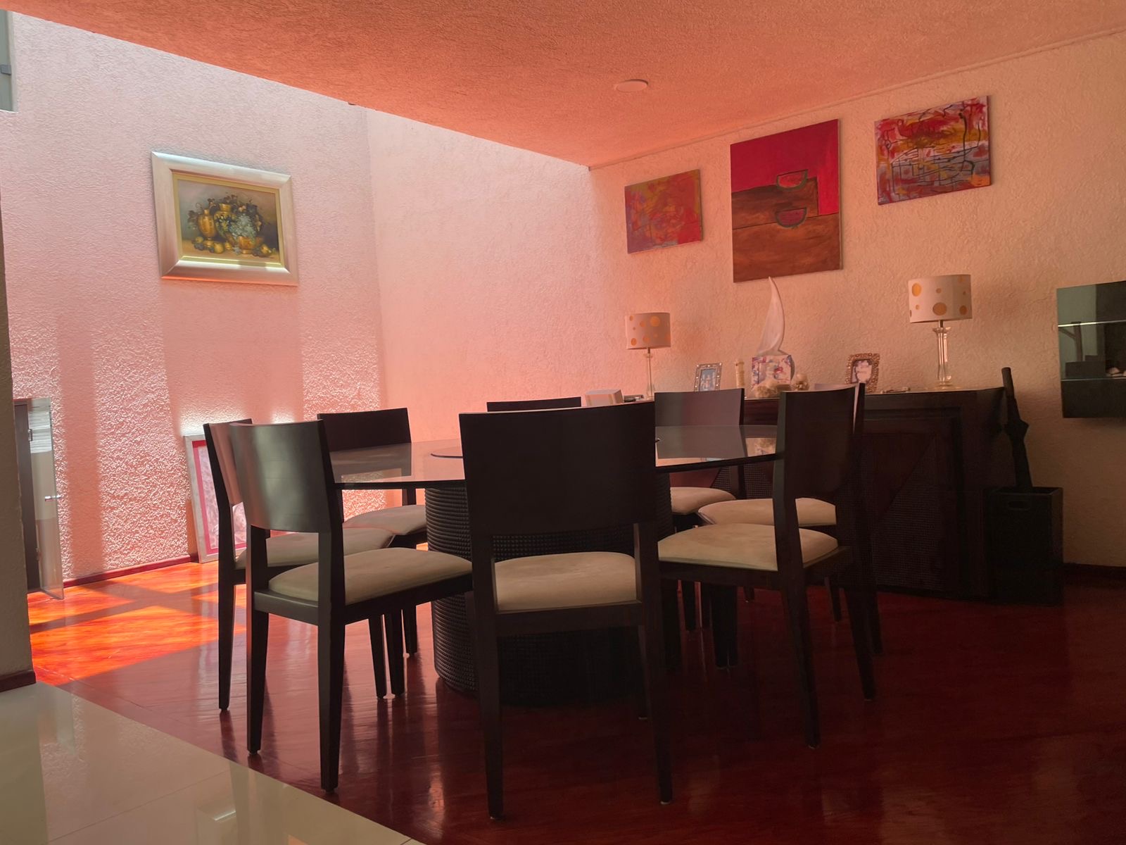 Espectacular casa en renta en Jardines en la Montaña, ubicada frente al parque dentro de una de las zonas más exclusivas y seguras del sur de la CDMX. Cuenta con 4 recámaras, 4 baños completos, medio baño de visitas, cuarto de servicio con baño, sala-comedor principal con chimenea, family room, cocina equipada con desayunador y solar, además de jardín, salón de eventos, patio de servicio con fregadero, cisterna y 3 estacionamientos. La propiedad ofrece excelente iluminación natural, techos altos y acabados de calidad. Disfruta seguridad 24/7/365, calles tranquilas y ambiente familiar, además de cercanía con comercios, colegios de prestigio y servicios. Ideal para familias o quienes buscan privacidad, naturaleza y alto nivel de vida.