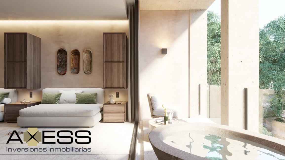 Este exclusivo departamento en Icht, en el corazón de Tulum, es un espacio diseñado para quienes buscan una experiencia de vida que combine lujo discreto, confort y conexión con la naturaleza. Con 59 m² de construcción, el departamento se distribuye de manera eficiente, ofreciendo un ambiente de paz y armonía. El espacio incluye: 1 recámara amplia y luminosa. 2 baños completos con acabados modernos. Una terraza privada con vista y una tina exterior para relajarse. Una cocina y comedor integrados con la sala. Un cuarto de lavado y áreas de almacenamiento. Acceso directo a la alberca exterior. El desarrollo Icht es un santuario de paz que ofrece una amplia gama de amenidades que elevan el estilo de vida de sus residentes: Relajación y bienestar: La alberca principal "El Ojo", carril de nado, área de yoga, un spa y cabañas privadas. Comunidad y socialización: Un lobby elegante, un day club y una zona familiar. Seguridad: Vigilancia 24/7 y control de acceso. La ubicación de la propiedad es ideal, en una de las zonas de mayor proyección de crecimiento en Tulum. La cercanía a playas vírgenes, zonas arqueológicas y cenotes, sumada a la consolidada infraestructura turística y la alta demanda de renta, hace de este departamento una inversión inteligente con un gran potencial de revalorización y un lugar perfecto para vivir con propósito.